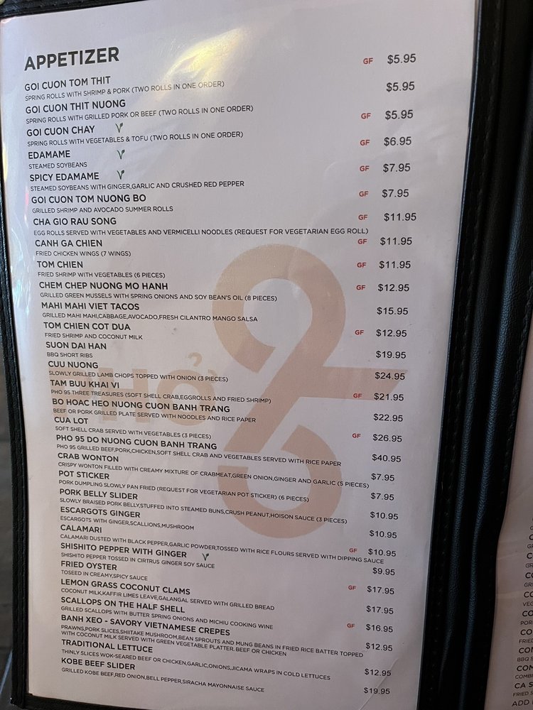 Pho 95 in Denver, CO is a popular Vietnamese restaurant offering a wide range of vegetarian soup options. Known for its vegan and vegetarian-friendly menu, Pho 95 provides an array of dishes suitable for all dietary preferences. The restaurant prides itself on its accessibility, with wheelchair access, parking near the entrance, and QR code menus available. In addition to its delicious food, Pho 95 offers a variety of amenities such as free Wi-Fi, TV, and a full bar. Customers can also enjoy outdoor seating and take advantage of happy hour specials. With its welcoming atmosphere and diverse menu options, Pho 95 is a great choice for groups, families, and individuals looking for a satisfying dining experience.